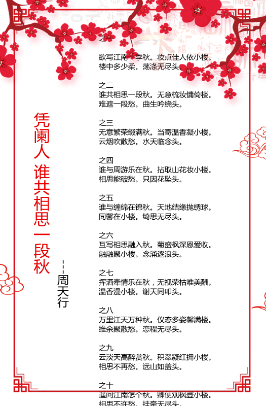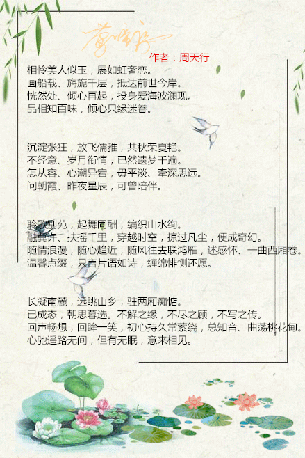 再托鸿雁捎情诗。描绘满腔期冀、赋新词。