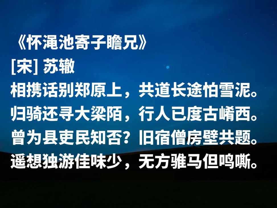 刻苦努力,仕途不幸,相比哥哥,苏辙仕途曲折,他一生曲折的经历让其创作了数百首诗作,也是其创作高潮时期。政治上的不幸,也是他文学创作的大幸,为后人留下诸多佳篇。据记载,苏辙存世诗文有近两千首,首首清幽峻拔,高雅闲谈,都是流传千古的佳品。