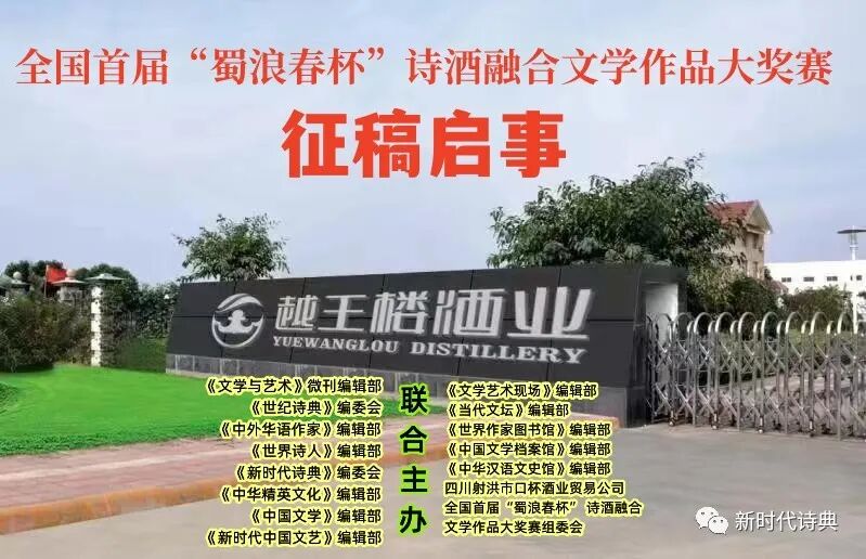 全国首届“蜀浪春杯”诗酒融合文学作品大奖赛征稿启事 由《文学与艺术》《世纪诗典》《中外华语作家》《世界诗人》《新时代诗典》五大微刊、《中华精英文化》《中国文学》《新时代中国文艺》《文学艺术现场》《当代文坛》五大头条、《世界作家图书馆》《中国文学档案馆》《中华汉语文史馆》三大馆编辑部、四川射洪市口杯酒业贸易公司联合主办的全国首届“蜀浪春杯”诗酒融合文学作品大奖赛自即日起面向海内外华语作家、诗人征稿。唐肃宗上元二年(761年),诗人杜甫因避战乱流寓成都,不能与家人团聚。为排遣心中烦闷,提着射洪人所酿的春酒,独自登上成都西山,俯瞰锦江景色,触景生情写下了著名诗篇《野望》:“金华山北涪水西,仲冬风日始凄凄。山连越巂蟠三蜀,水散巴渝下五溪。独鹤不知何事舞,饥乌似欲向人啼。射洪春酒寒仍绿,目极伤神谁为携。”杜甫诗中所提到的“春酒”,是射洪人以传统古法酿出的美酒;其酒制酿工序复杂、发酵时间漫长,一般春天开始酿制,秋冬成熟,春节才能开坛畅饮,所以叫“春酒”。射洪人酿制春酒的习俗,从唐代一直延续至今。“蜀浪春铭记1860”陈香基酒,是四川射洪口杯酒业贸易有限公司与四川绵阳越王楼酒业有限公司以高粱、玉米、小麦、大米、糯米、核桃为原料,采用春酒秘制技术精心酿制、多年洞藏而成的纯粮养生酒,由于造价成本较高、酿制时间长、酿制工艺复杂,酒体天然呈黄、自然成香、色如琥珀、晶莹剔透、具有入口绵甜,饮后不上头、不伤胃、口不干和养颜、美容、强身健体之功效,一度成为历朝历代达官显贵私酿秘藏的“养生酒”,普通百姓鲜难得一见。随着社会的进步和人们生活水平的普遍提高,为适应经济社会发展需要,一批具有家国情怀的企业界人士,不惜以巨资挖掘春酒资源,酿制出这款美酒,供广大饮酒爱好者享用。产品上市以来,深受爱酒人士好评,不但成为商务宴请、群团聚会、馈赠亲友之佳品,而且成为2023年“纪念贺炳炎将军诞辰110周年”纪念酒,“贺炳炎硬骨头精神基金会”专用产品,被誉为“既有家国情怀,又充满诗性豪情的美酒”。 一、征稿内容:全国首届“蜀浪春杯”诗酒融合文学作品大奖赛征稿内容不限、题材不限,体裁为小说、散文、现代诗、古体诗、散文诗、辞赋;小说、散文、散文诗、辞赋投稿限一篇,字数不超过10000字;现代诗1—10首,总行数不超过200行;古体诗3首以上至20首。 二、投稿形式:投稿作品必须是作者原创作品,文责自负,严禁作者变换姓名反复、重复投稿;凡入围作品即视为作者同意授权主办单位拥有该作品的宣传使用权;作者在投稿之前,请务必仔细校对自己所投稿件,确定没有错误后方可投稿,否则一旦发现错误后再次投稿,编辑系统会自动将你列入“重复投稿”黑名单;概不接受平台发表以后再要求修改稿件;凡投稿者均可获得参加五大微刊组织的颁奖典礼、笔会、成为的重点作者、签约作家的机会;特别优秀的作品将向有关报刊、书籍推荐发表;
