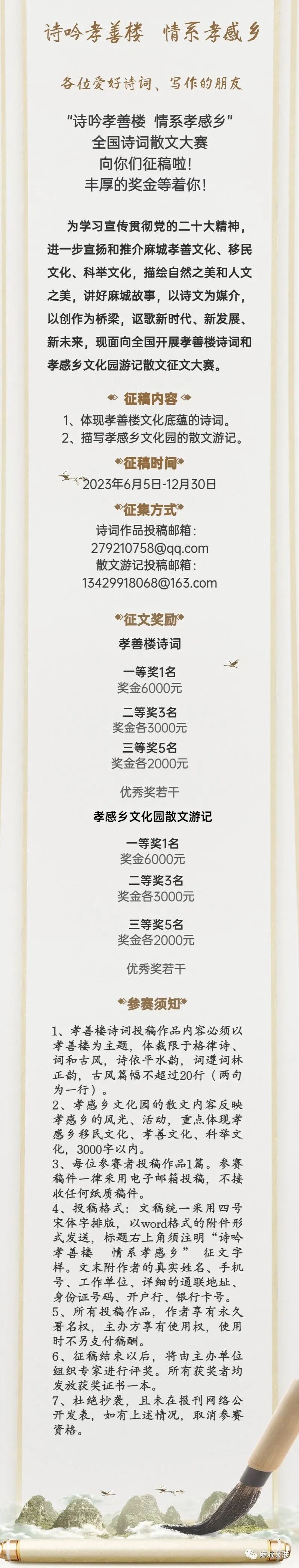 “诗吟孝善楼 情系孝感乡” 全国诗词散文大赛等你来~